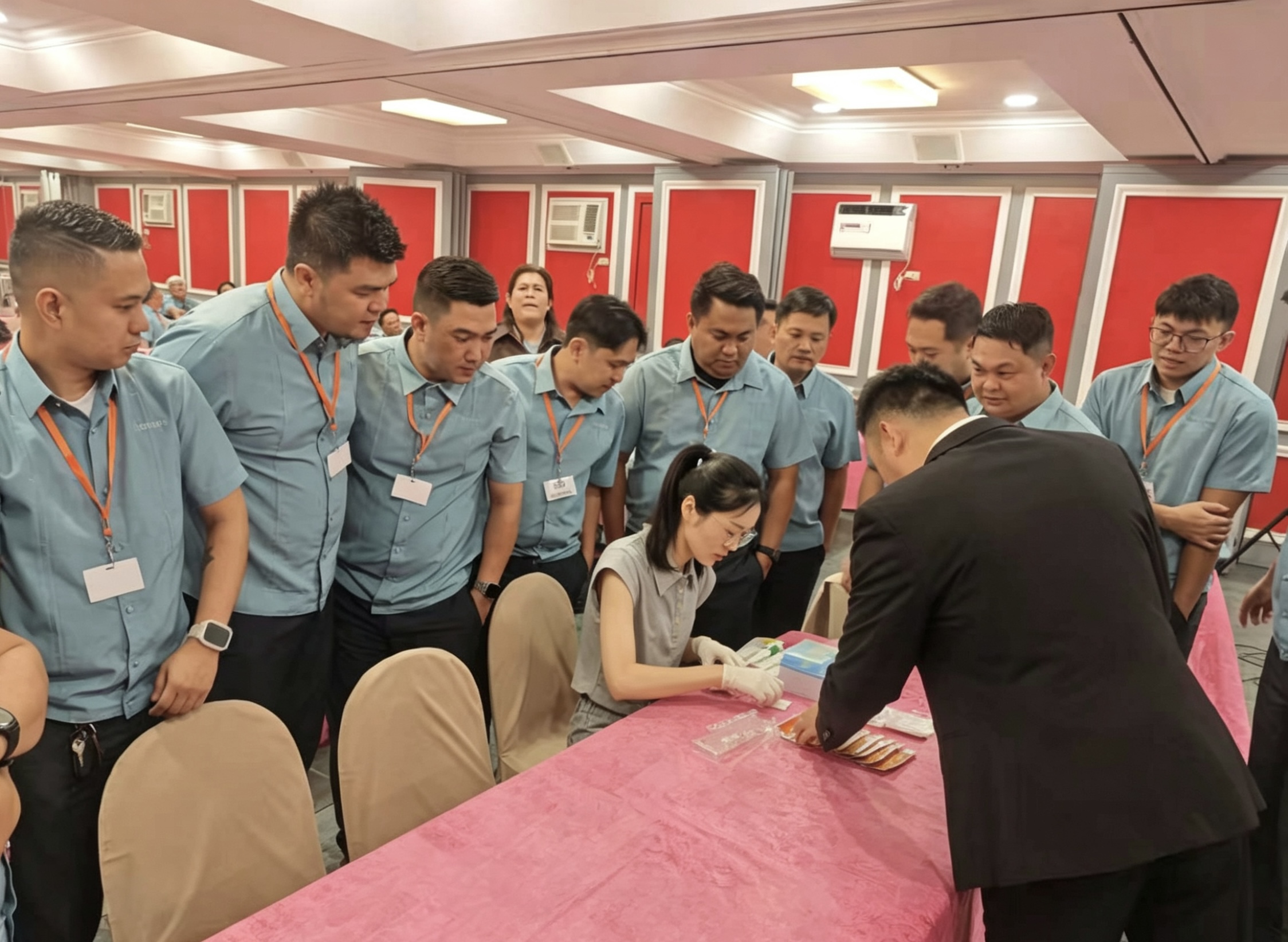 在培训交流活动中,国际部经理李俊率先登台,围绕深蓝医疗自主研发的系列检测产品进行了全面而生动的介绍。从研发背景到技术参数,从操作便捷性到市场应用前景,李经理的讲解逻辑清晰、重点突出,让客户对深蓝医疗的产品有了深刻而系统的认知。理论培训之后,技术研发员余倩现场进行了专业的检测演示。她手法娴熟、操作严谨,每一个步骤都精准到位。现场检测结果清晰、可靠,产品性能在客户眼前得到了最直观的验证,赢得了客户的高度认可与一致好评。